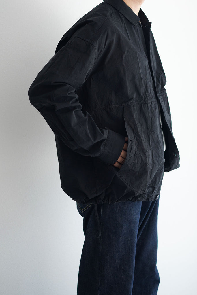 新型のブルゾン(MIKA BLOUZON)と同様に前面にボタン付きのパッチポケットのデザインが特徴。裾にドローストリング付きのデザインシャツは最近CASEY CASEYではベストセラーになることも多いスタイルです。