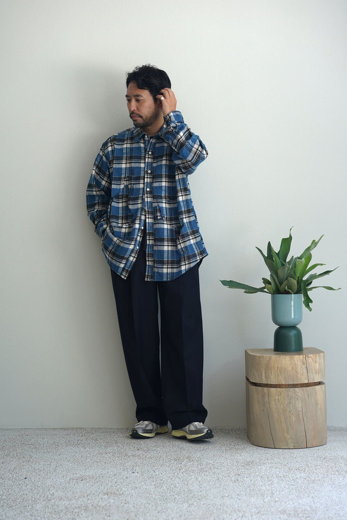 ISSUETHINGSのアイテムは、職人の手作業などでさまざまな"issue(問題)"を加えて製作を進めております。計算されたオーバーシルエットは自然体で、心地良く、愉しんで着用いただける特有のバランス感。巧みに凝った技術、製作の手法など今までにないアプローチをとっているブランドとなっております。