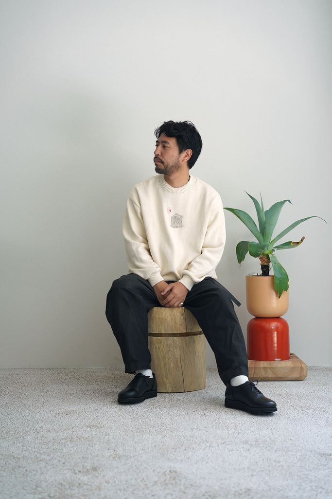ISSUETHINGSのアイテムは、職人の手作業などでさまざまな"issue(問題)"を加えて製作を進めております。計算されたオーバーシルエットは自然体で、心地良く、愉しんで着用いただける特有のバランス感。巧みに凝った技術、製作の手法など今までにないアプローチをとっているブランドとなっております。