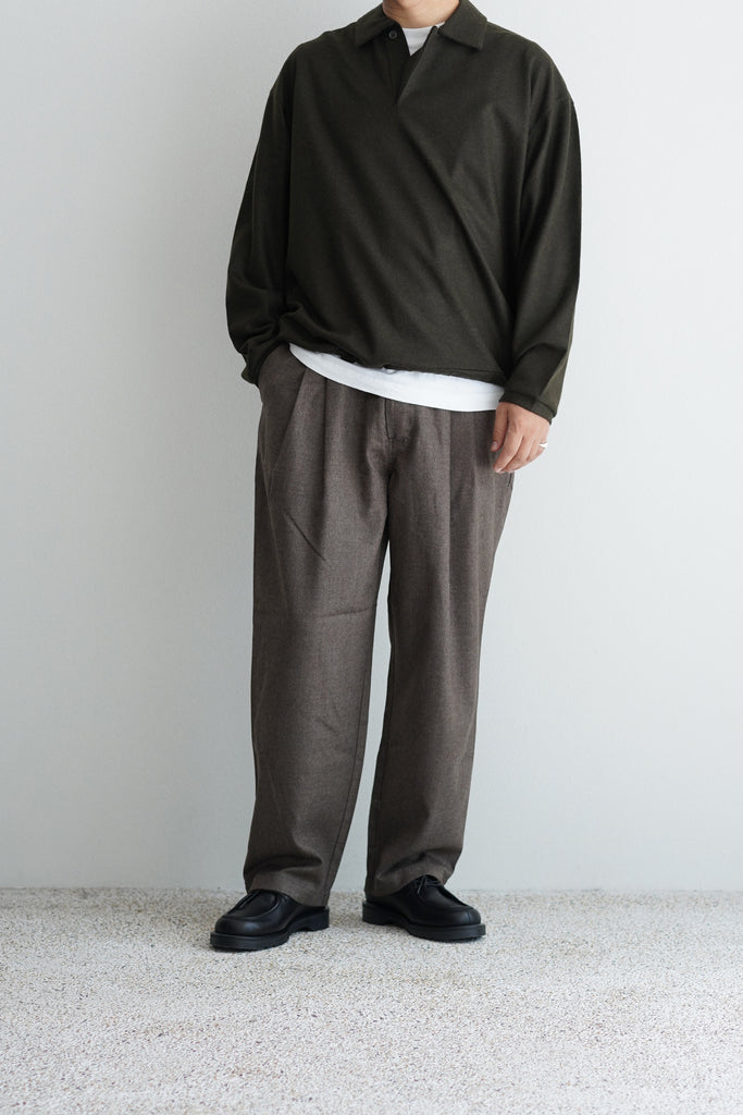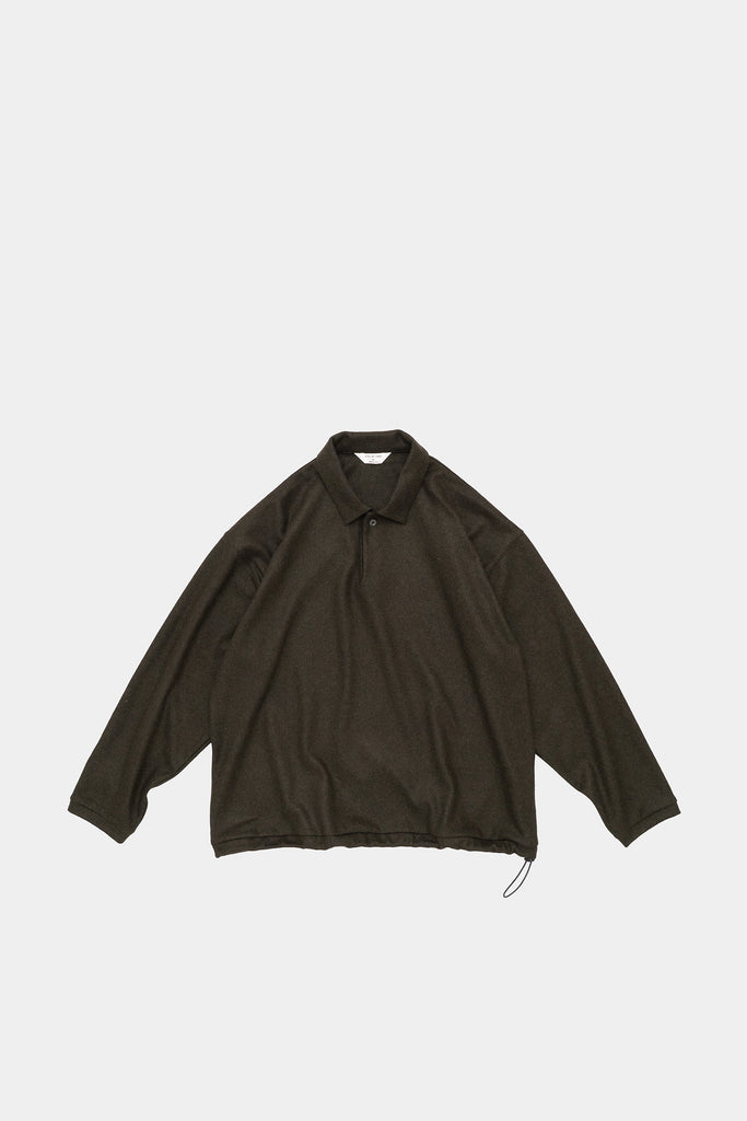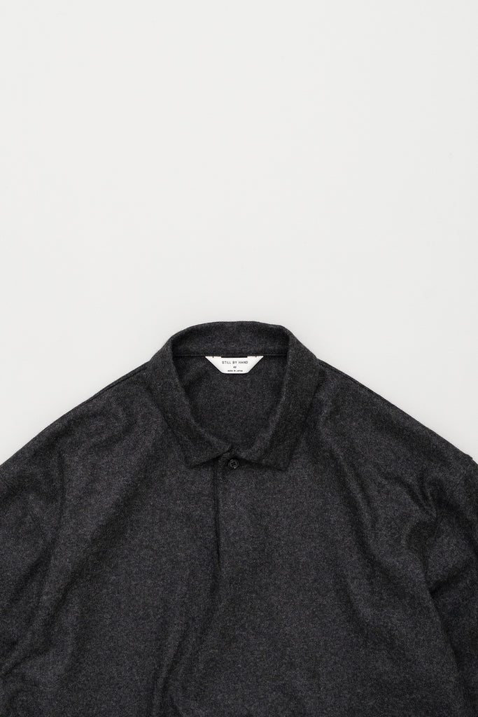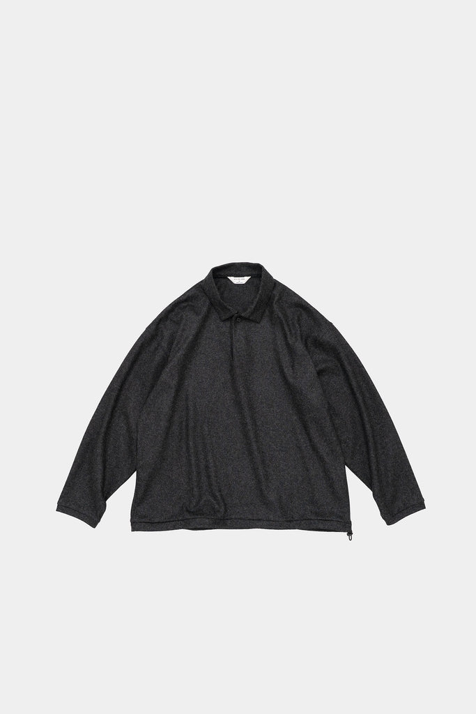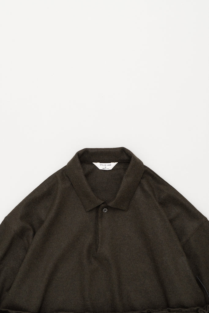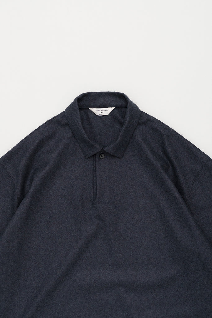 ウールとシルクを混紡した上品な光沢感が特徴の生地で長袖のポロシャツを作成しました。