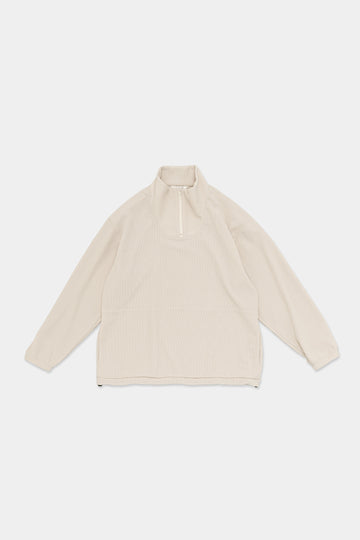 襟は低めのハイネックで、ジップを開けて襟を寝かせてシャツっぽく着ていただくのもオススメです。