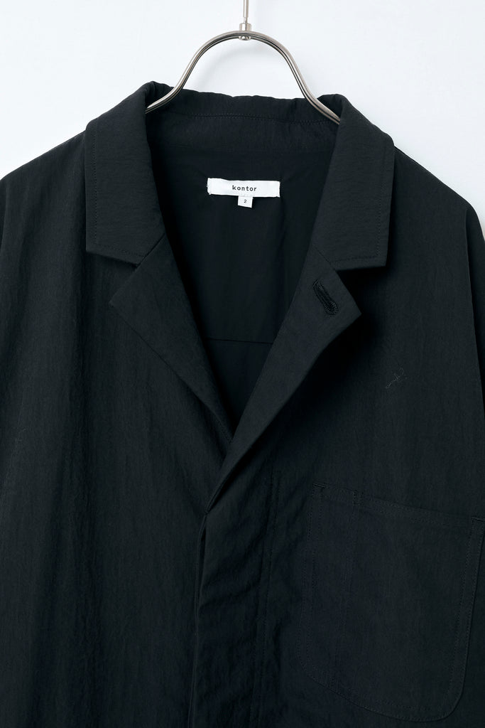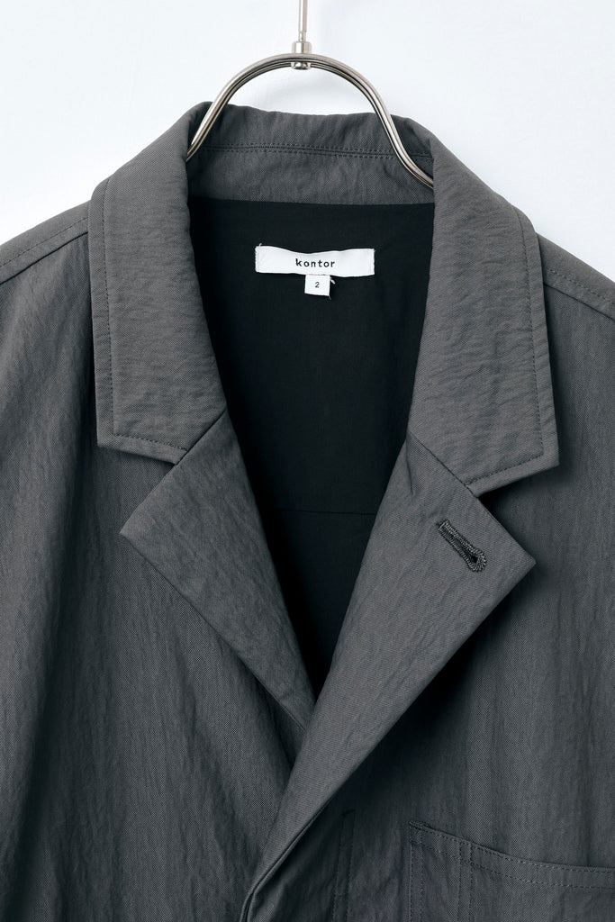 生地はkontorオリジナルの高密度に織られたナイロンツイルで、塩縮処理を施して独特の表面感と硬さを加えています。