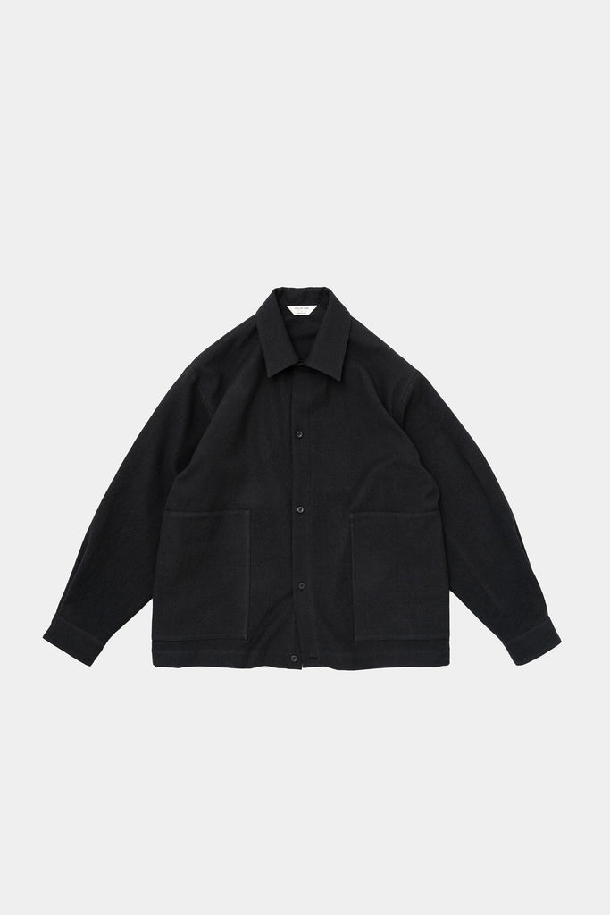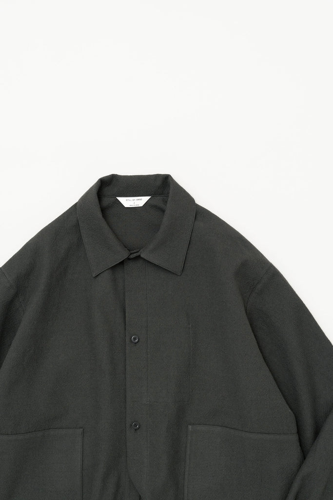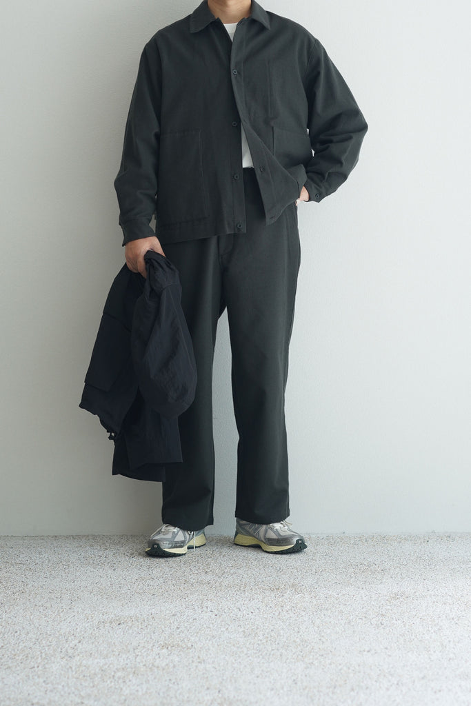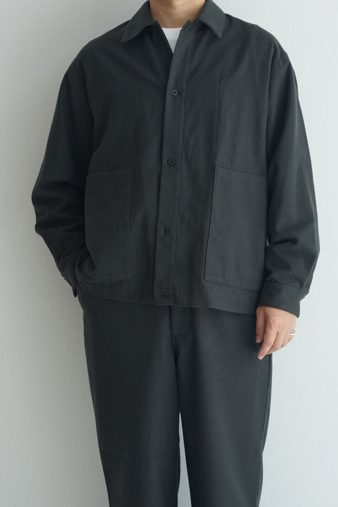 綿/ウールの混紡糸を使用したオリジナル素材で軽めのシャツブルゾンを作成。