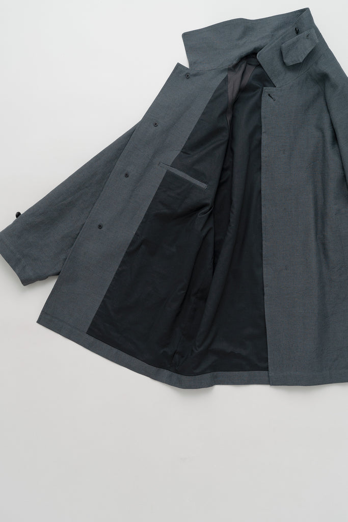 少しナチュラルな表情が特徴のコットンとリネン/ラミーの混ざった生地を使用したコート。