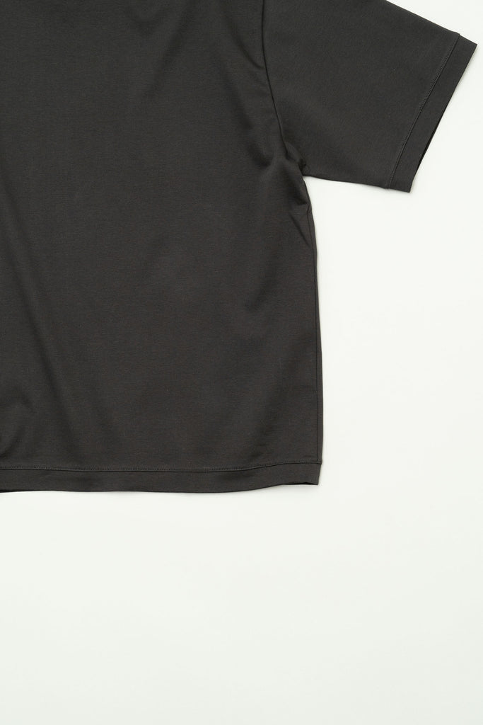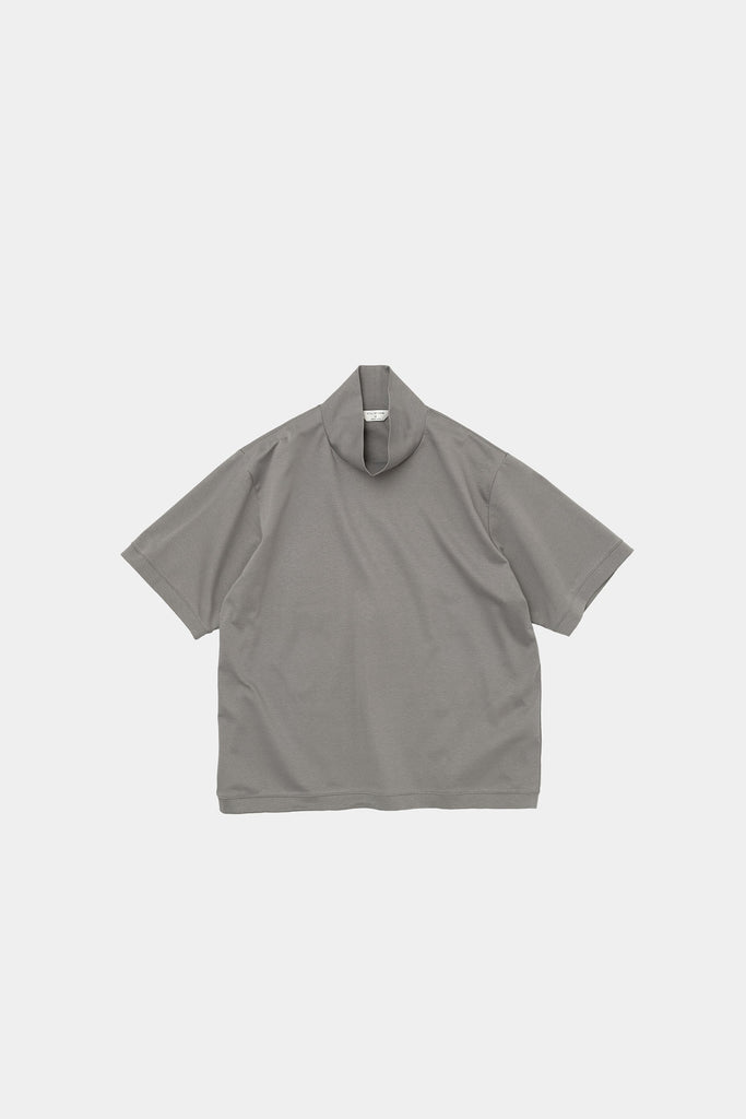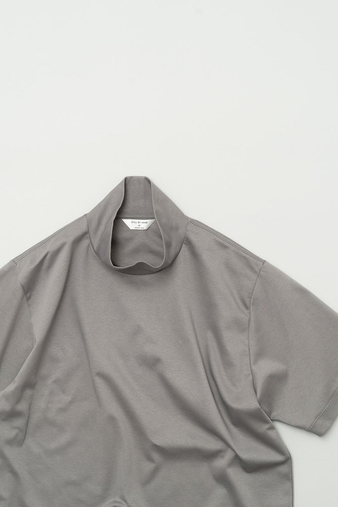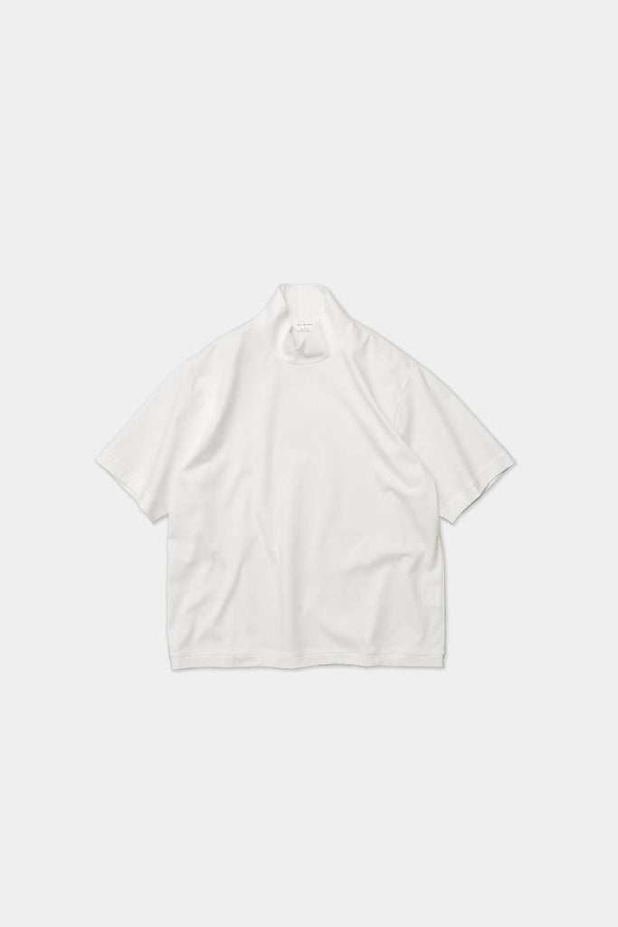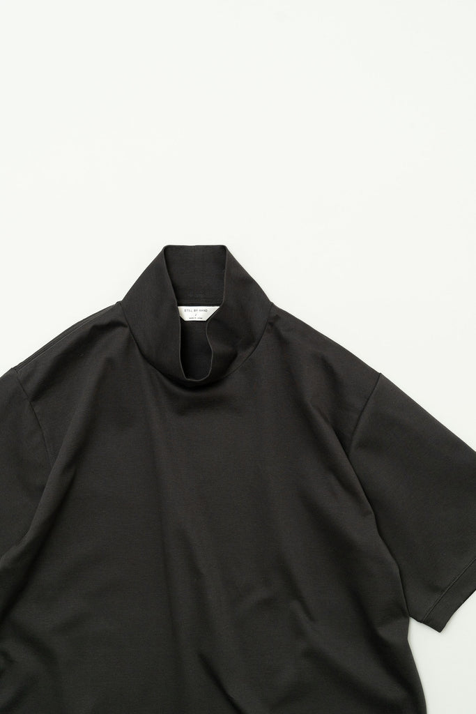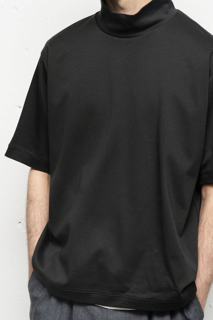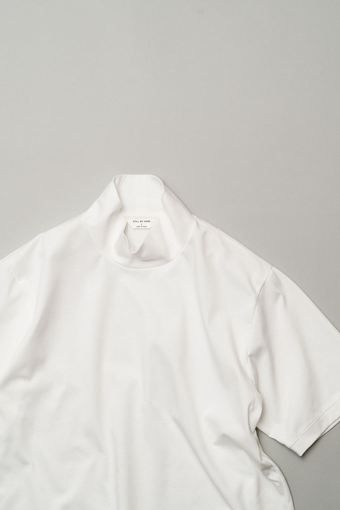 弾力性のあるポンチ素材のハイネックTシャツ。