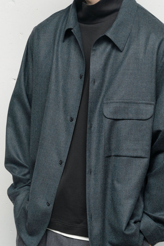長袖シャツなどの羽織り物の中にレイヤードをした際にネックの高さがあるため、秋らしさを演出できるアイテムです。