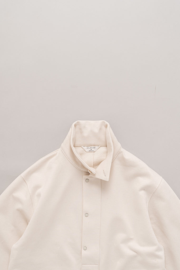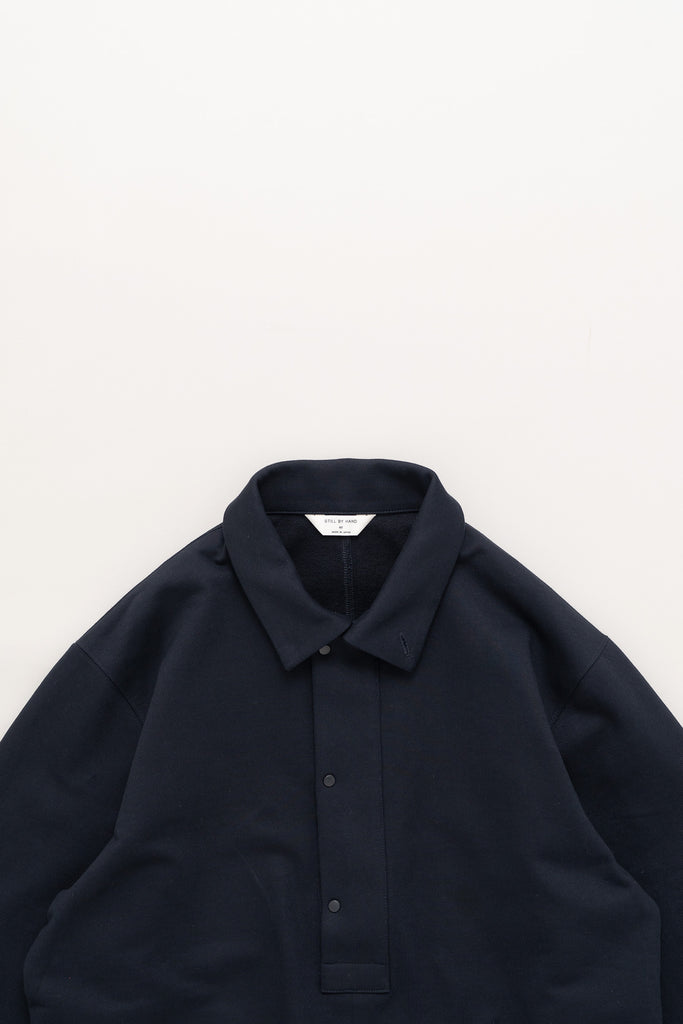 襟付きのデザインで寝かせての着用はもちろん、襟を立てた際も使用できるようボタン付きでスタンドカラーとしての着用も想定してデザインされています。