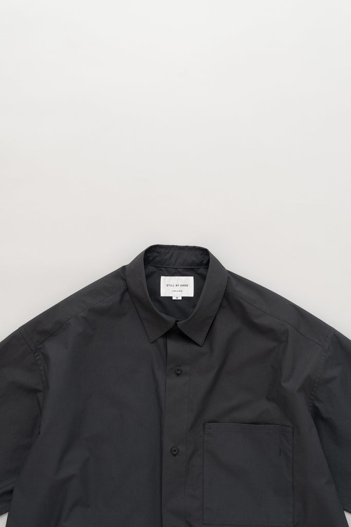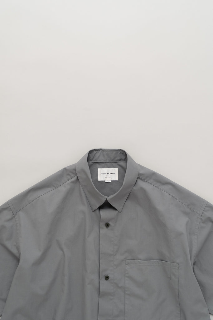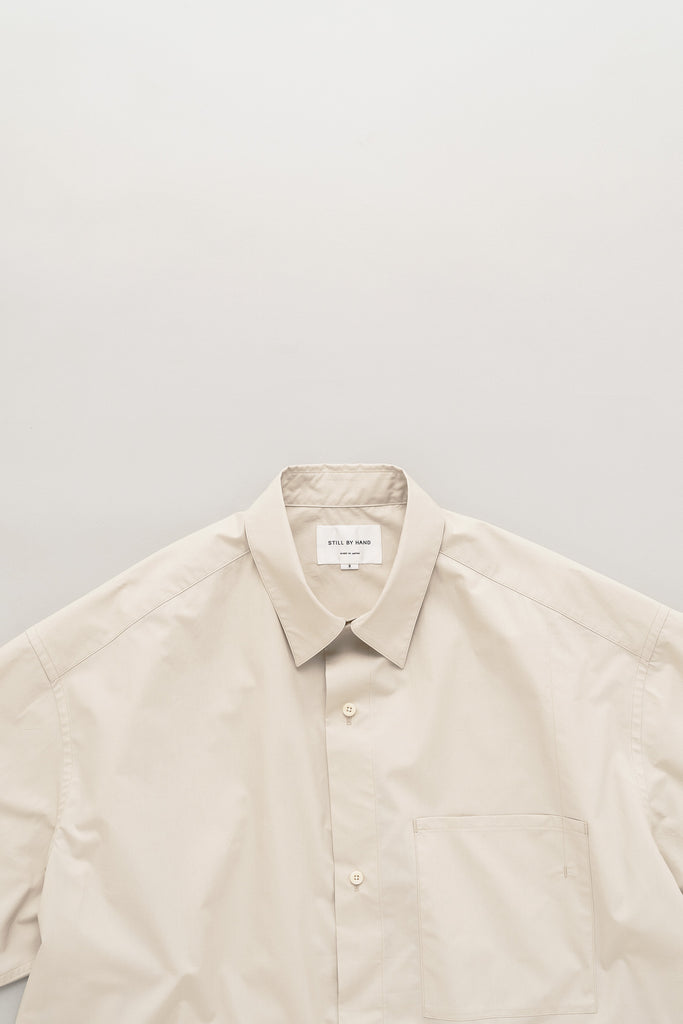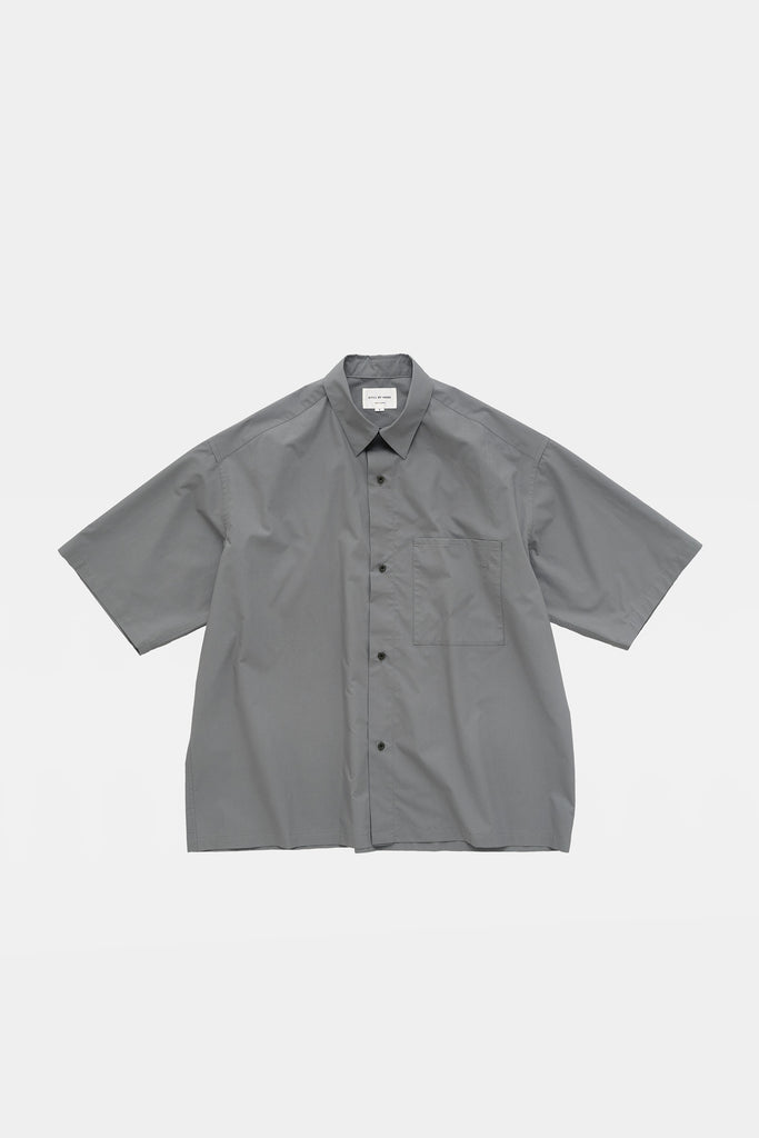 オーガニック超長綿とシルクを混紡したタイプライター生地を使用したオーバーサイズの半袖シャツ。