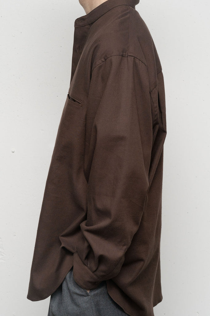 コットンとシルクの綾織素材を使用した、少し厚手のシャツ。