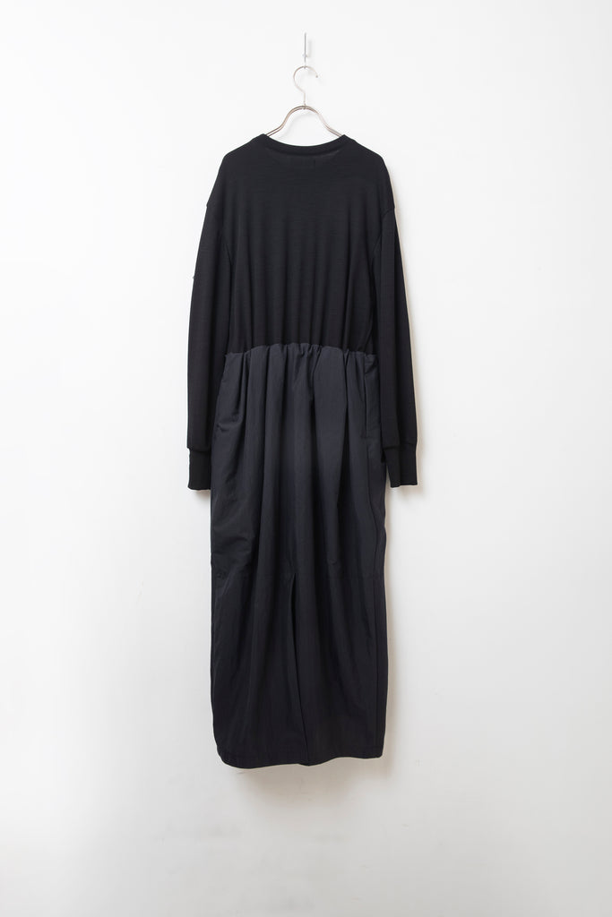 トレーナーとたっぷりギャザースカートをウエストゴムで合わせたワンピースです。