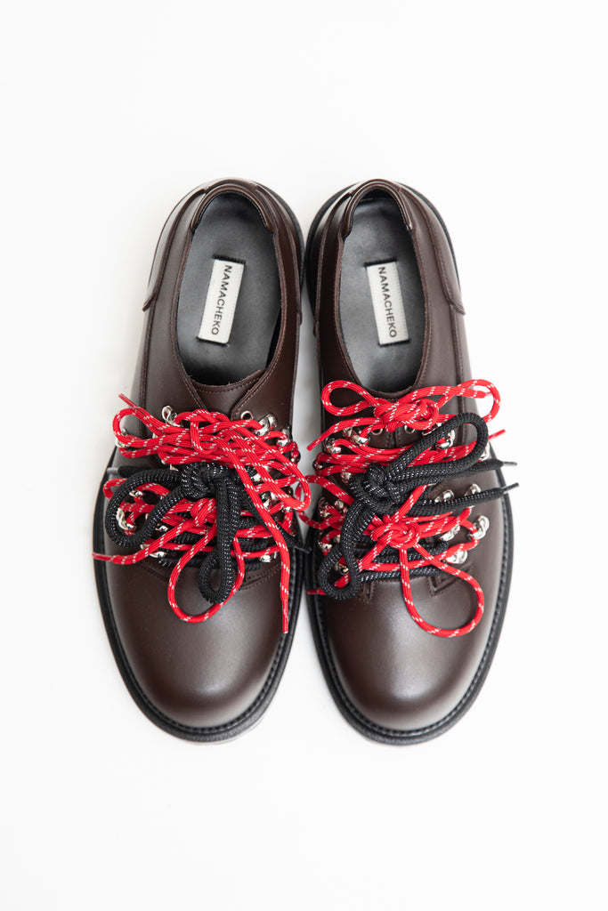 クルドの記憶とスウェーデンでの暮らし。相反する二つの文化を往還しながら、NAMACHEKOは境界の狭間に息づきます。その姿勢は瞬く間に注目を集め、アントワープを拠点とする活動はベルギー・ファッション・アワードを受賞し、ウールマーク・プライズのファイナリストとしても選ばれました。