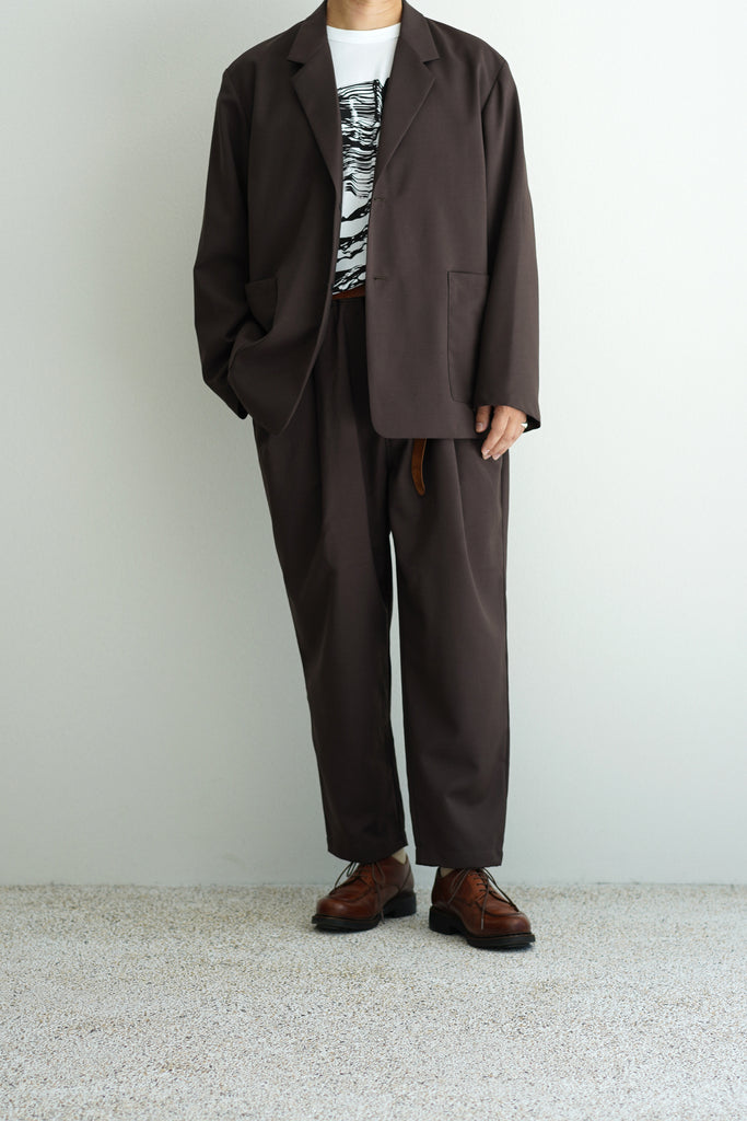 JK01253、BL01253と同素材を使用したウエストにゴムがしっかりと入ったキツめなテーパードが特徴のパンツ。