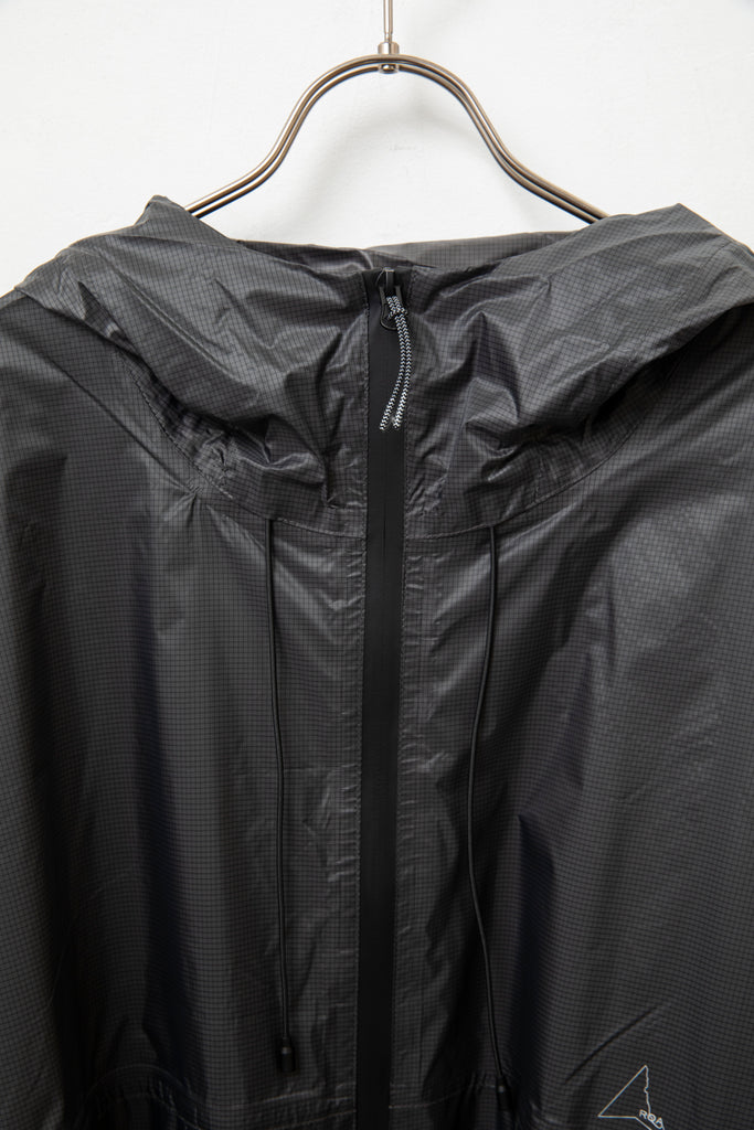 Surface Packable Grid Rain Coatは、防水性の軽量リップストップ生地を使用することで、着用者を雨から確実に守りながらも軽量で着心地の良い設計です。オーバーサイズのためジャケットの上から重ね着が可能で、背面の拡張可能なデザインによってバックパックも収納可能となっています。