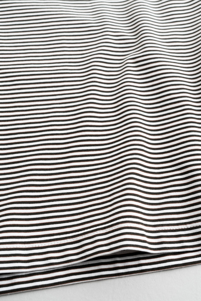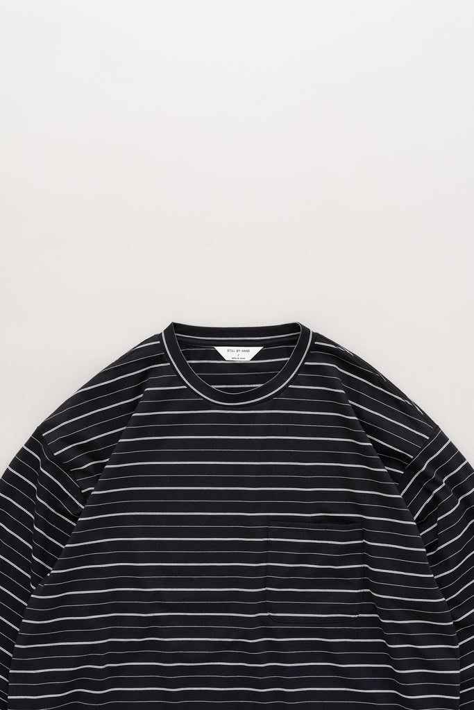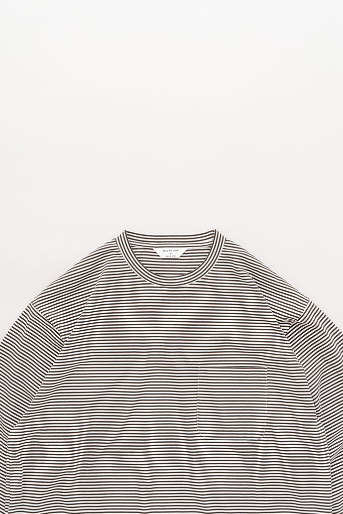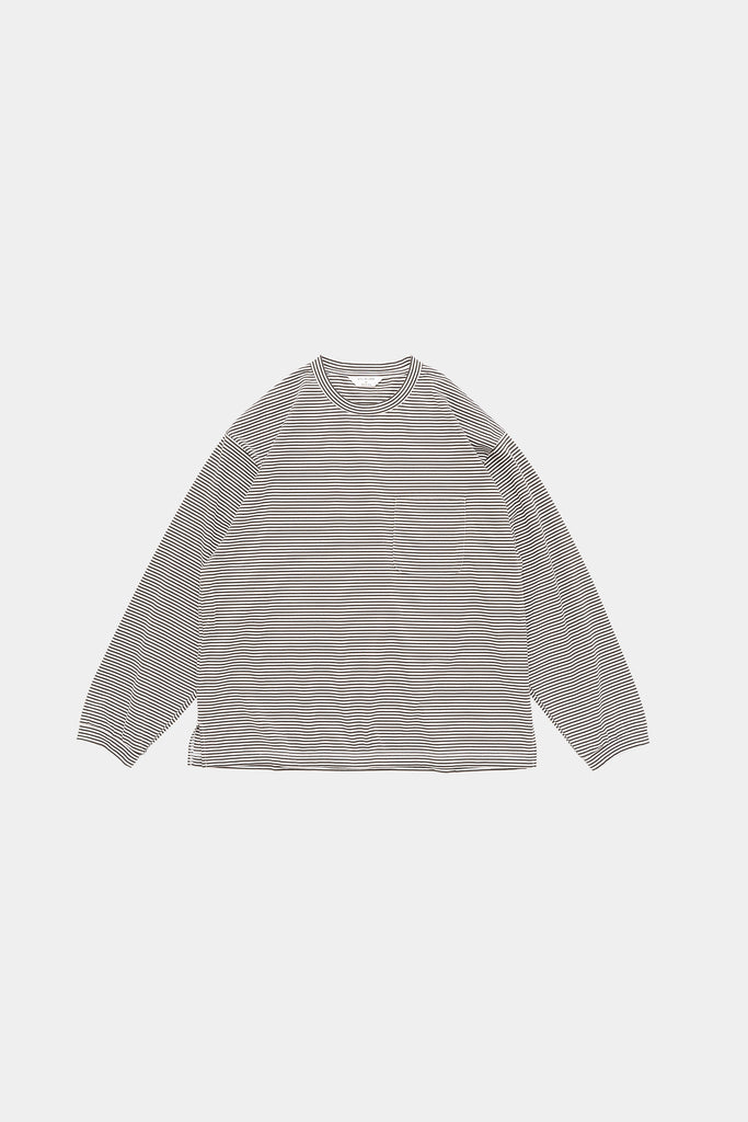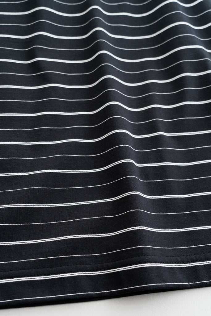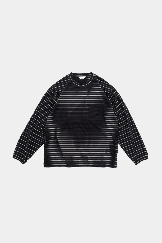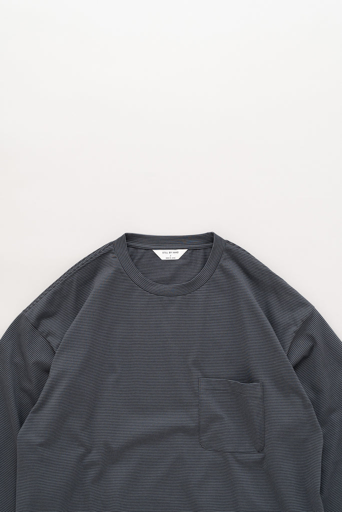 毛羽の少ないコンパクト糸という糸を使用し、尾州で製作したオリジナルのボーダーカットソー。
