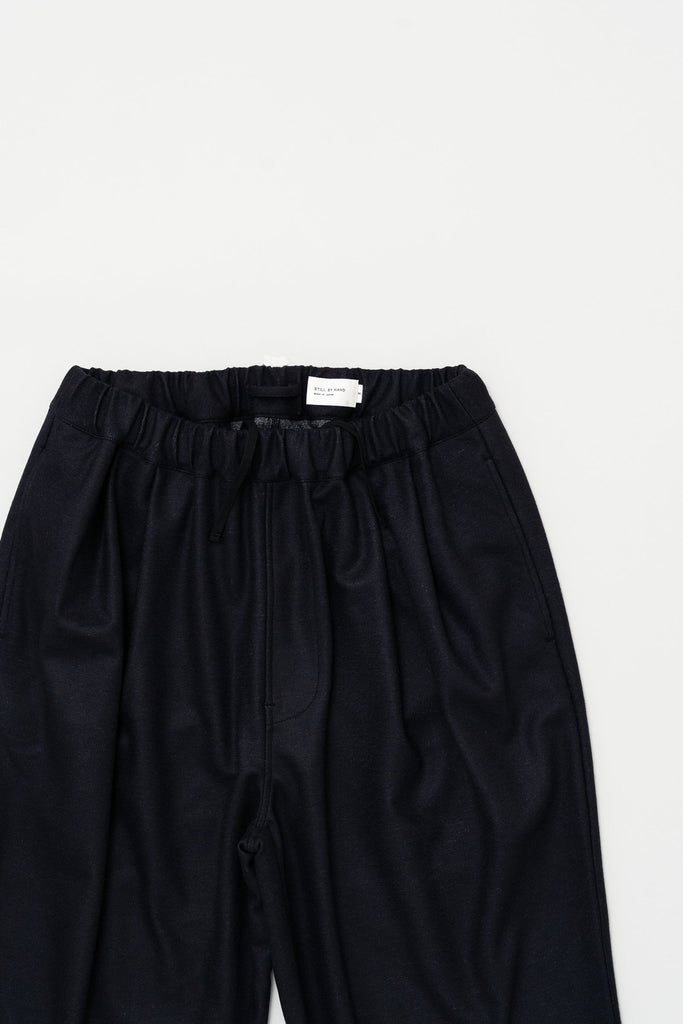 腰回りにしっかりボリュームがあるタックを入れワタリ幅も広くすることで、少しクセのあるシルエットになっています。