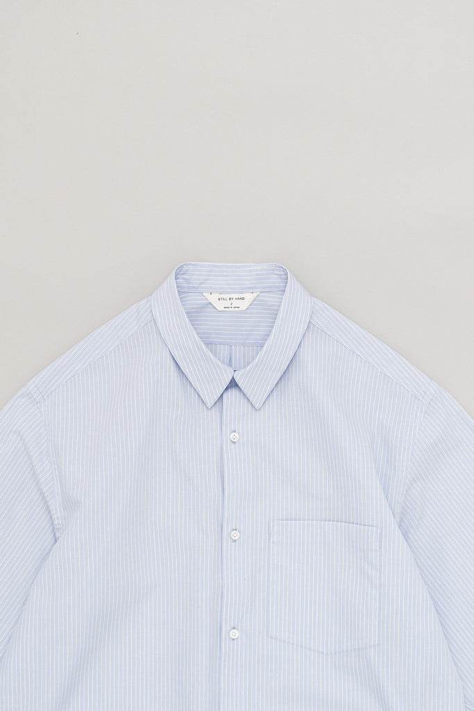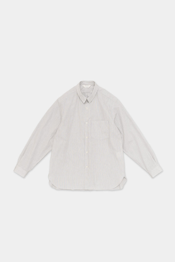 兵庫県の西脇産地で作製したオリジナルの先染めブロード素材の定番レギュラーシャツ。