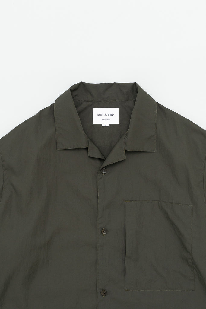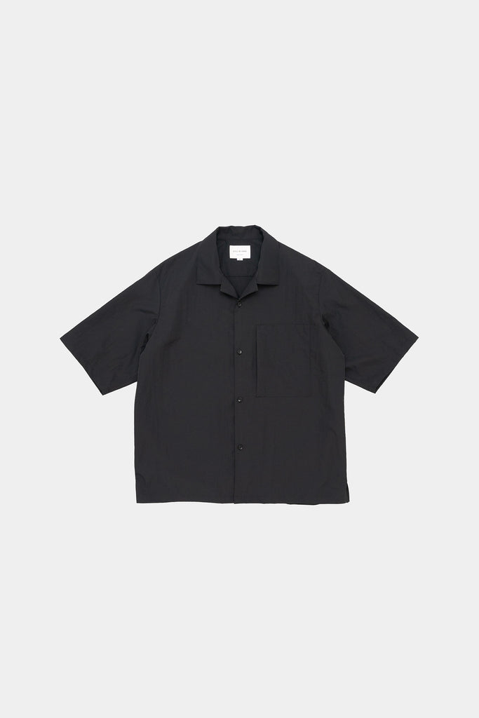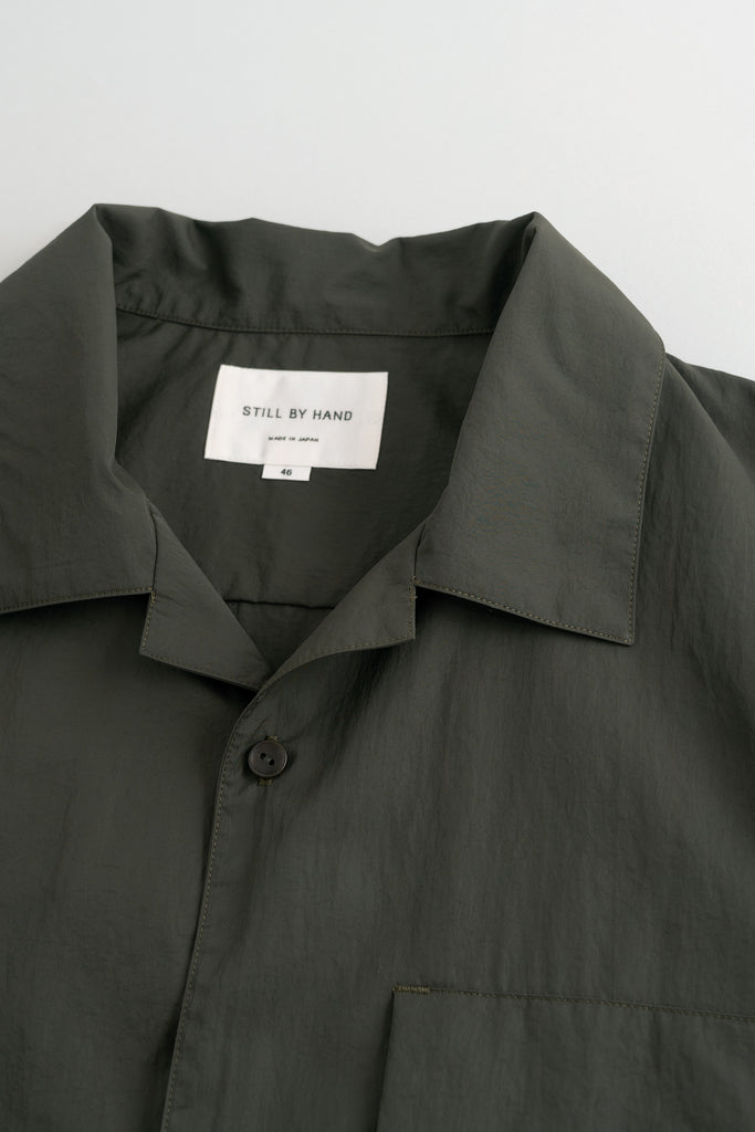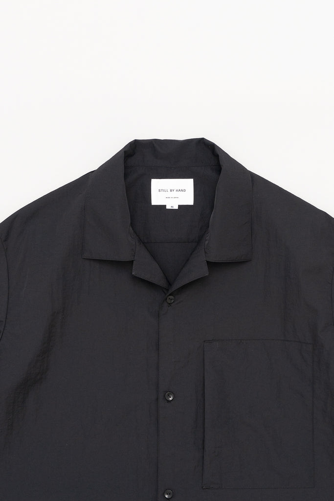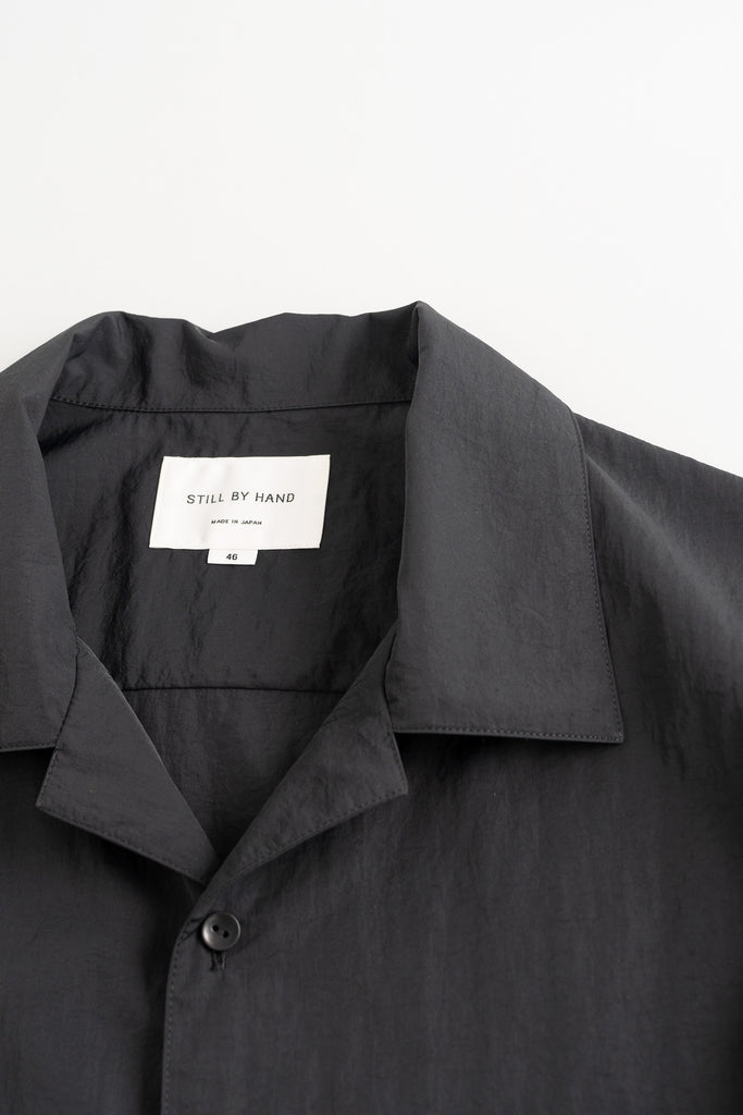 凹凸感のある表情が特徴のナイロン素材を使用したオープンカラーシャツ。