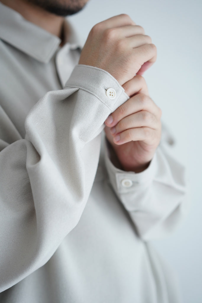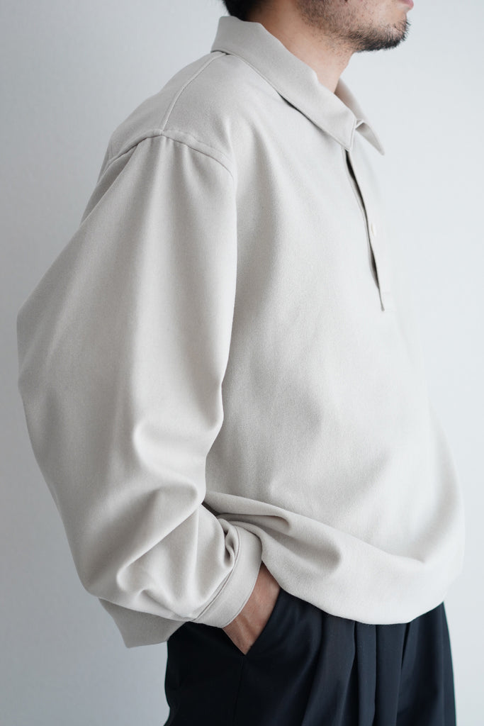 ラムウールを原料に使用しており軽く、柔らかい素材感が特徴のプルオーバーシャツ。