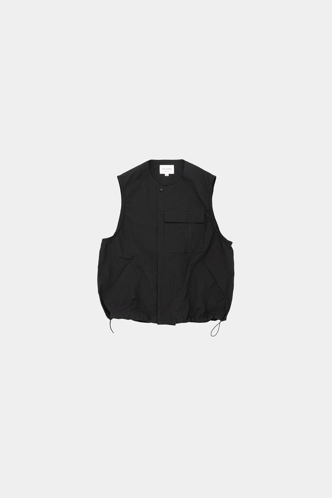 薄手でハリ感のある素材のクルーネックベスト。