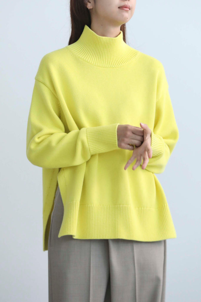折り返さなくも良いネックの長さと両脇に大きくスリットが入っているのがデザインポイントです。