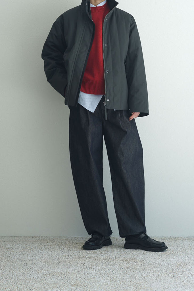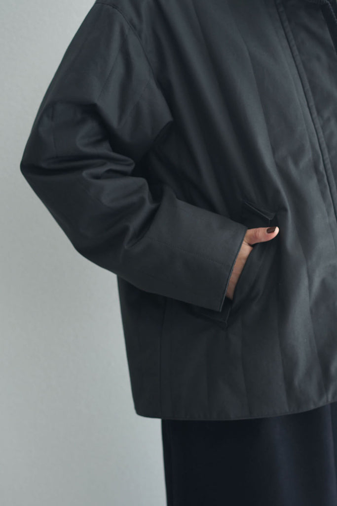 コットン素材にシンサレート中綿をキルティングし作成したパディングショートブルゾン。
