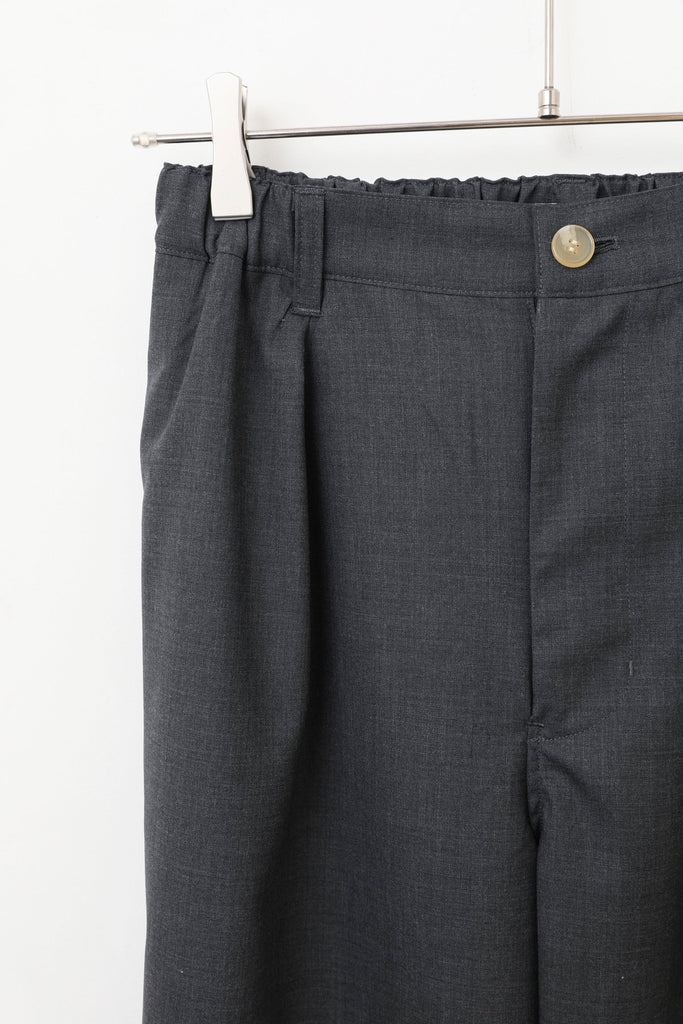 スーパー120sのサマーウールを使用した中太シルエットのテーパードパンツを作成。