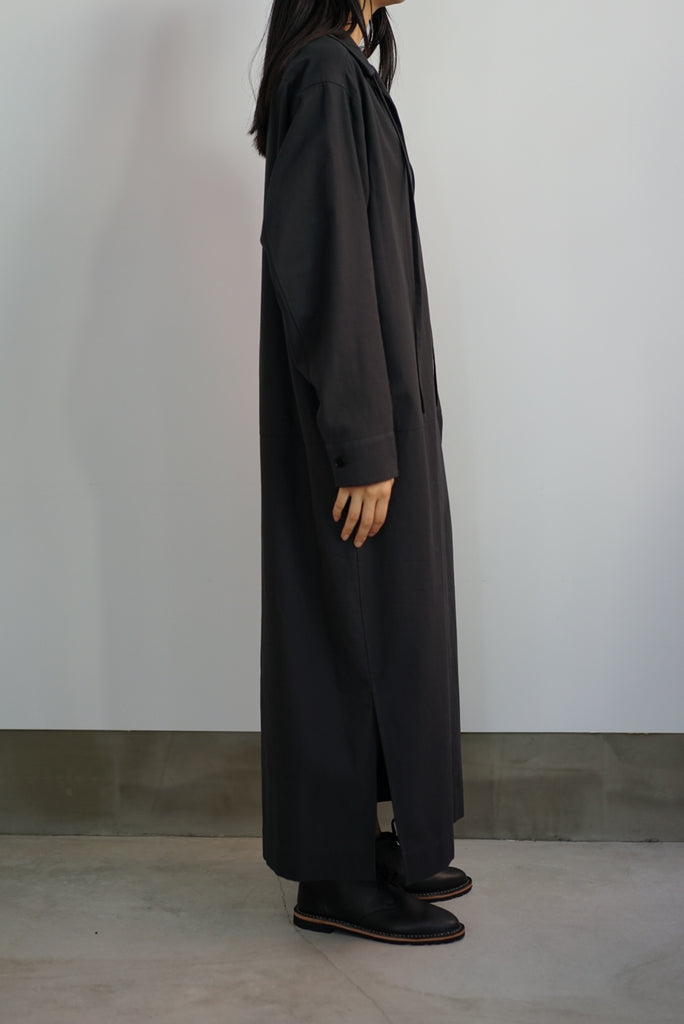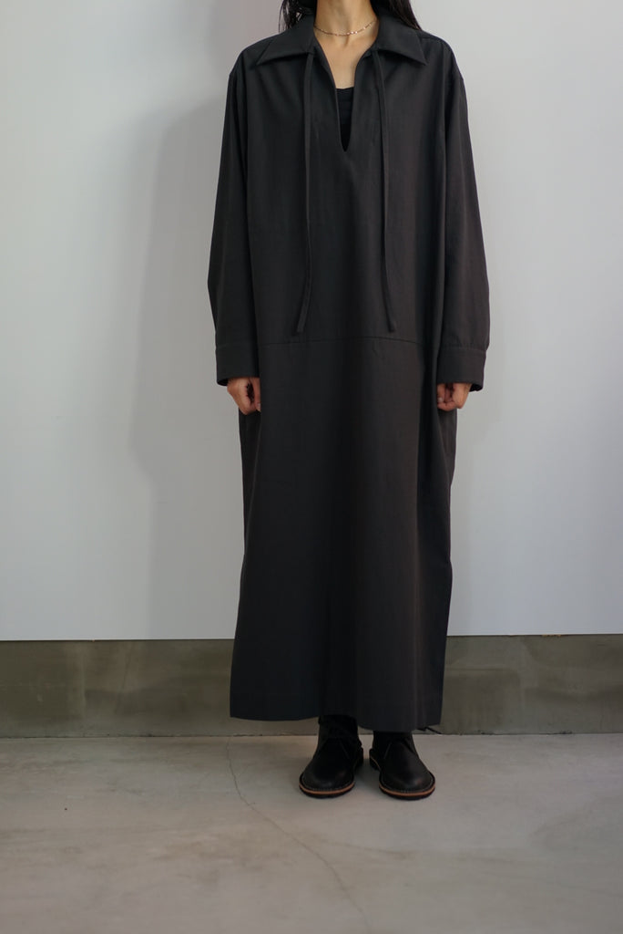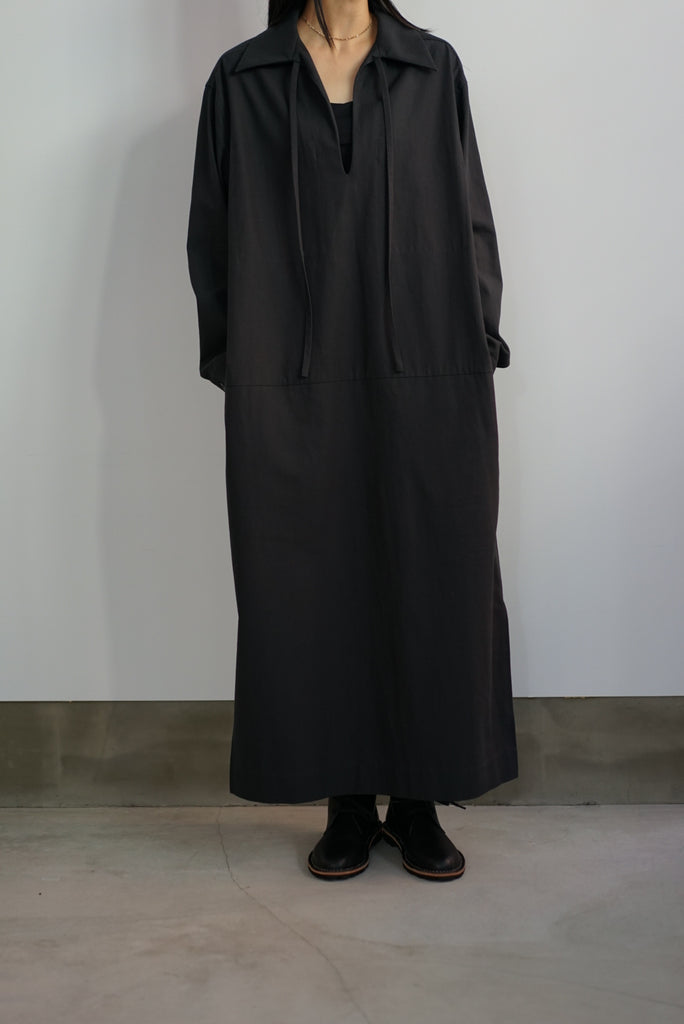 シャープな襟元のスリットが印象的なボクシーシルエットのチュニックドレスです。