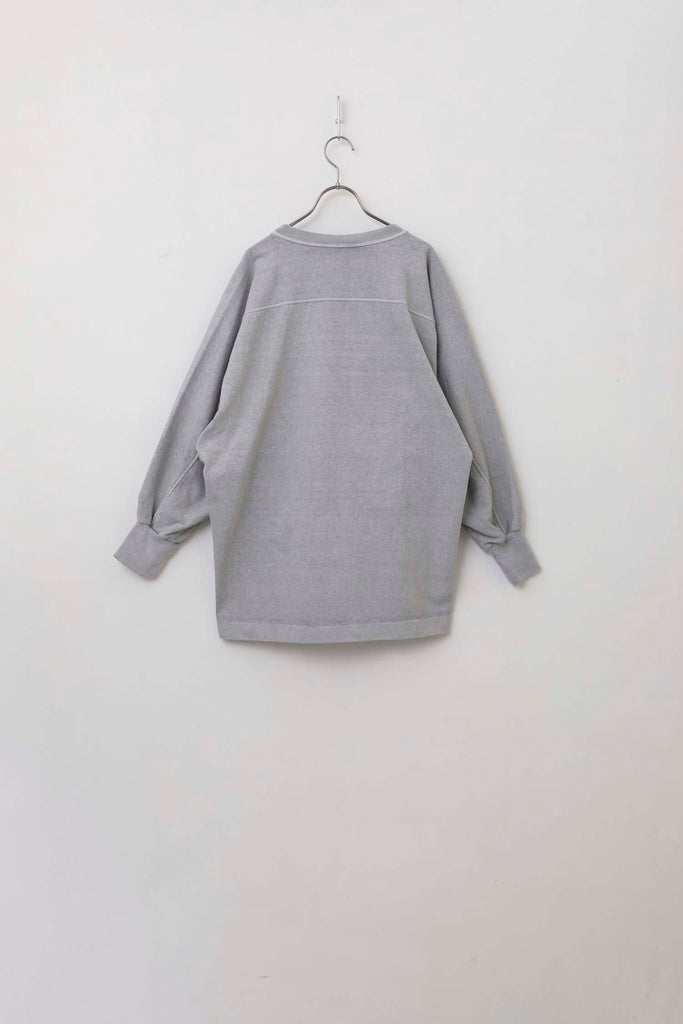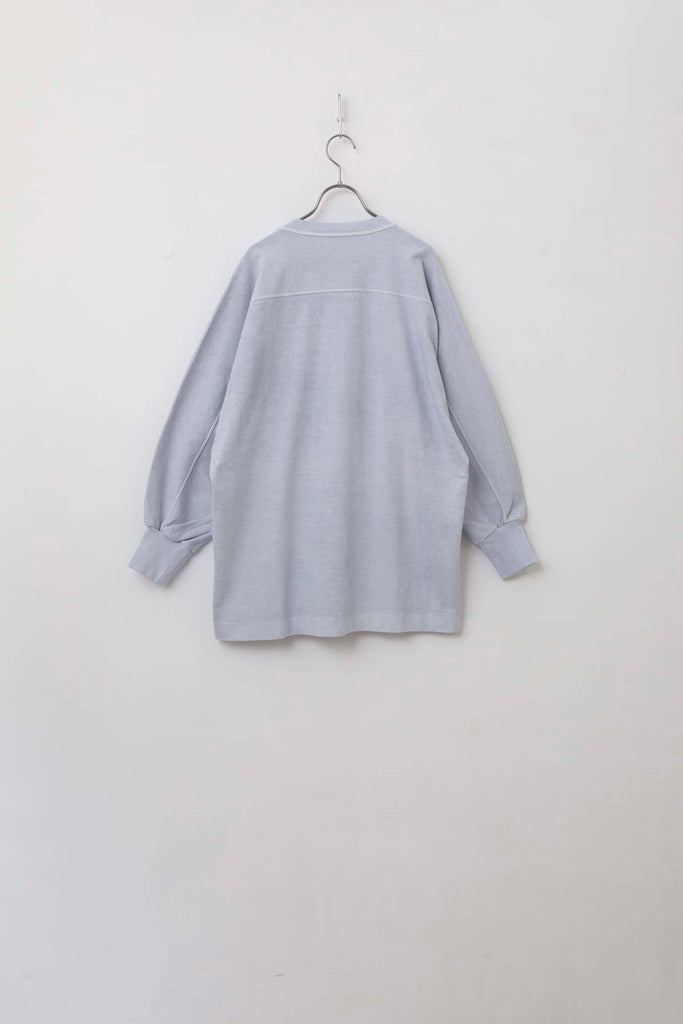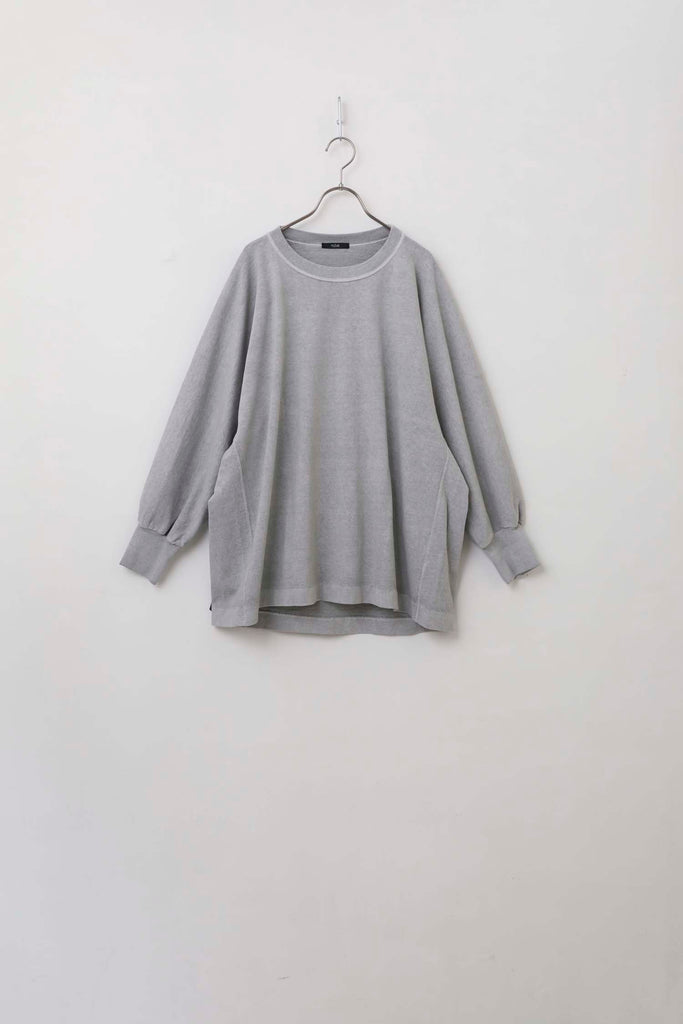 立体的なパターンのプルオーバーで、袖をたくし上げると袖にボリュームが出て1枚でコーディネートの主役になります。