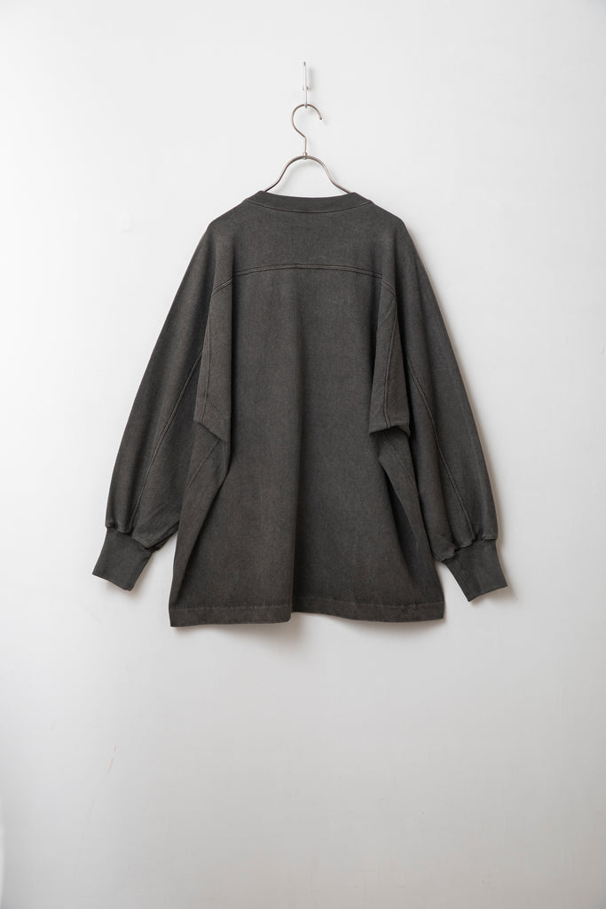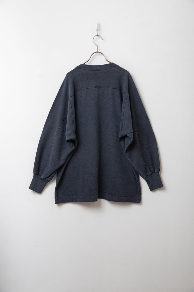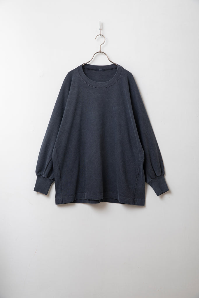 生地は着るほどに味が出る空紡糸を使用しており、製品で顔料染を施すことでムラ感のある染まり具合が特徴です。