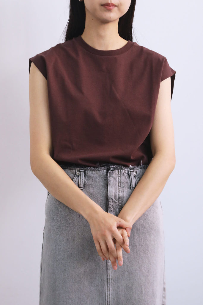 フレンチスリーブのプルオーバーは、ゆったりとした身幅と少しすぼまった裾がウエストで程よく溜まるシルエットです。