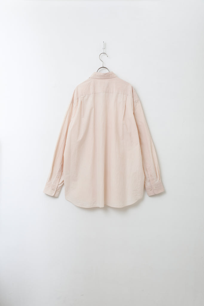 ドレスシャツらしい上品なパターンメイキングでありながら程よくドロップしたショルダーライン。ゆったりと広い身幅と力の抜けたルーズなサイズ感が特徴です。