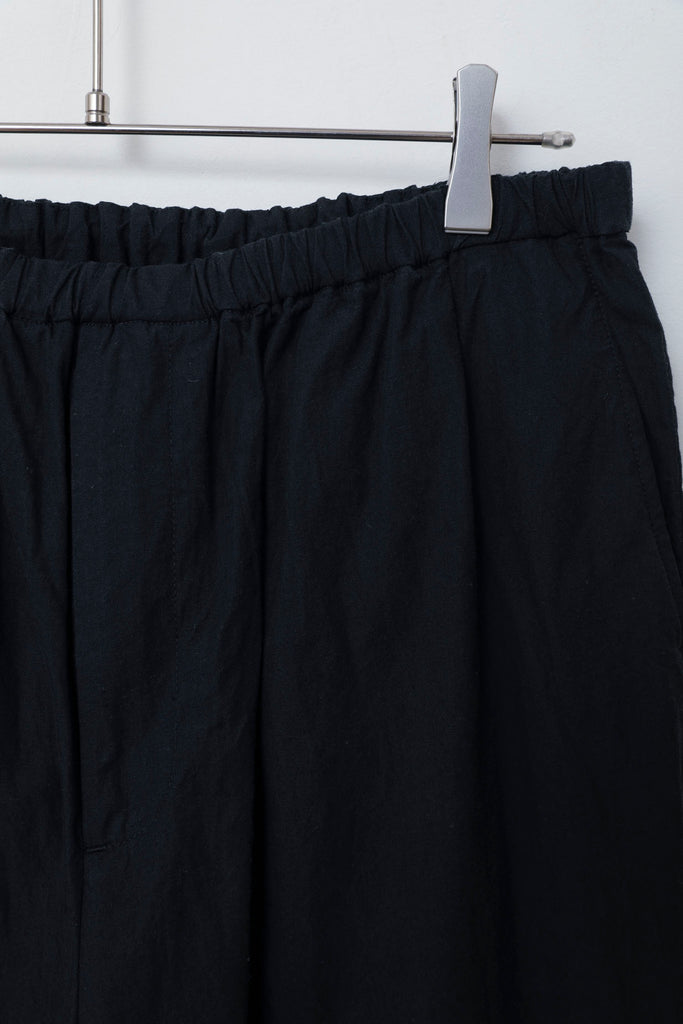 風になびく様な、贅沢な生地の分量感が特徴で、ウエスト紐を絞る事でドレープ感が際立ち、より上品でインパクトのあるシルエットを作ります。軽量かつ肌離れも良く、名前の如く、リラックスして履いていただけるパンツです。