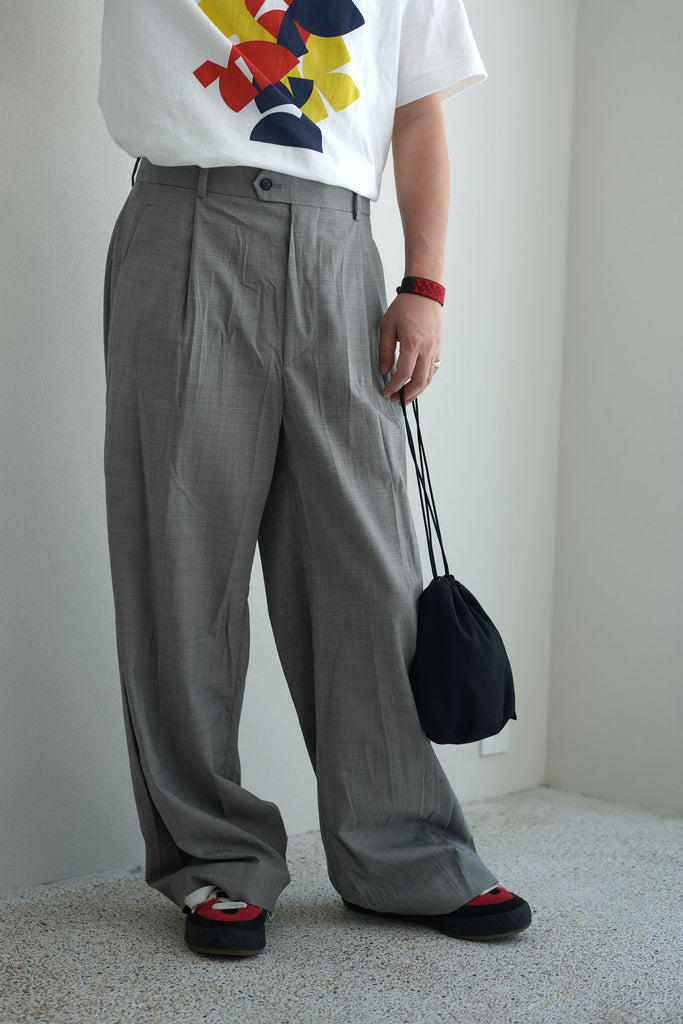 SS25 CAT WALK SHOWで一番好きなセットアップのLOOKで使用されていたトラウザーズです。HED MAYNERでは珍しいストレートシルエットのトラウザーズです。