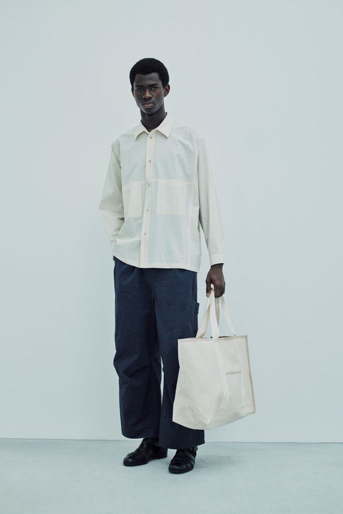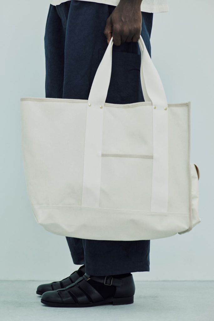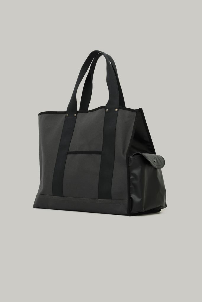 マチ部分の方向を変えることで容量を変えずに前後で印象が変わるユニークなトートバッグ。