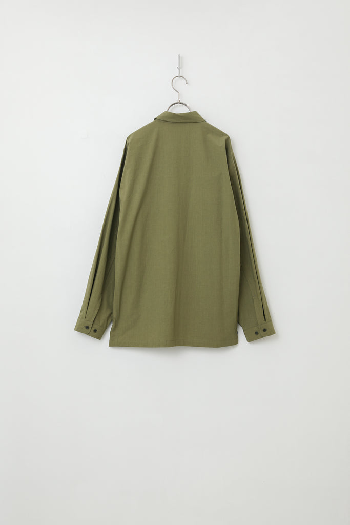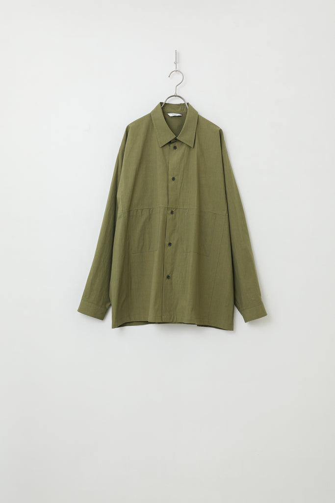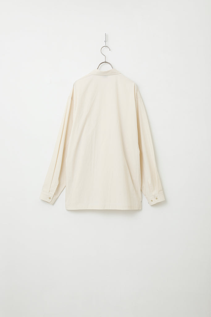 生地は80/1の超長綿を使用した滑らかな風合いのタイプライターを下工程で繰り返し揉みこむことで、洗いざらしのシワ形状を表現。見た目よりもサラッとしたタッチ感で主役になるシャツです。
