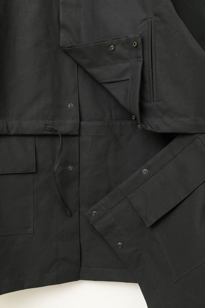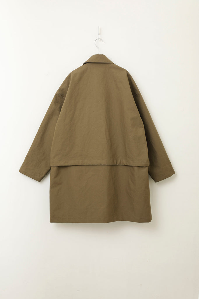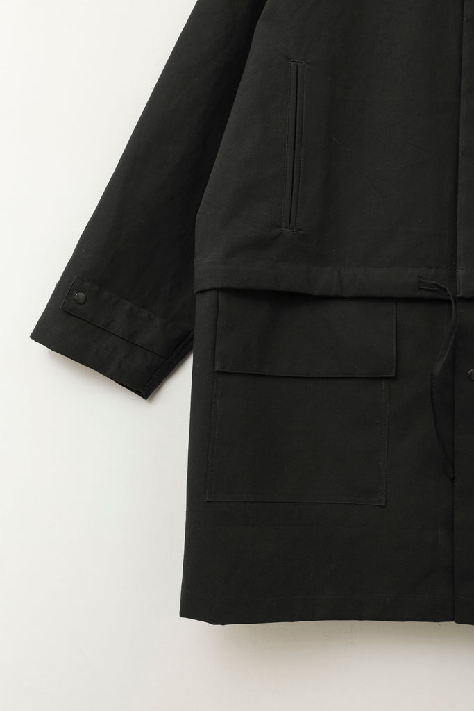 コート/ブルゾンの2WAYでの着用が可能なアウターです。いずれの状態でも自然でバランスの取れたシンプルなデザインながら、コンセプトが一目で伝わる点が特徴的です。機能面での特徴も持ち合わせた、魅力的なアイテムです。