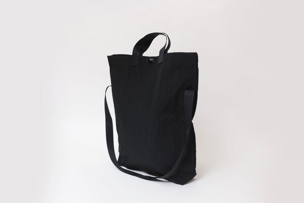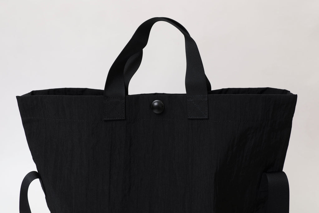 オリジナルナイロン生地を使用したマルチハンドルトート。開口部はテナックスナップを使用。長めのショルダーストラップは斜め掛けも可能。日本製。