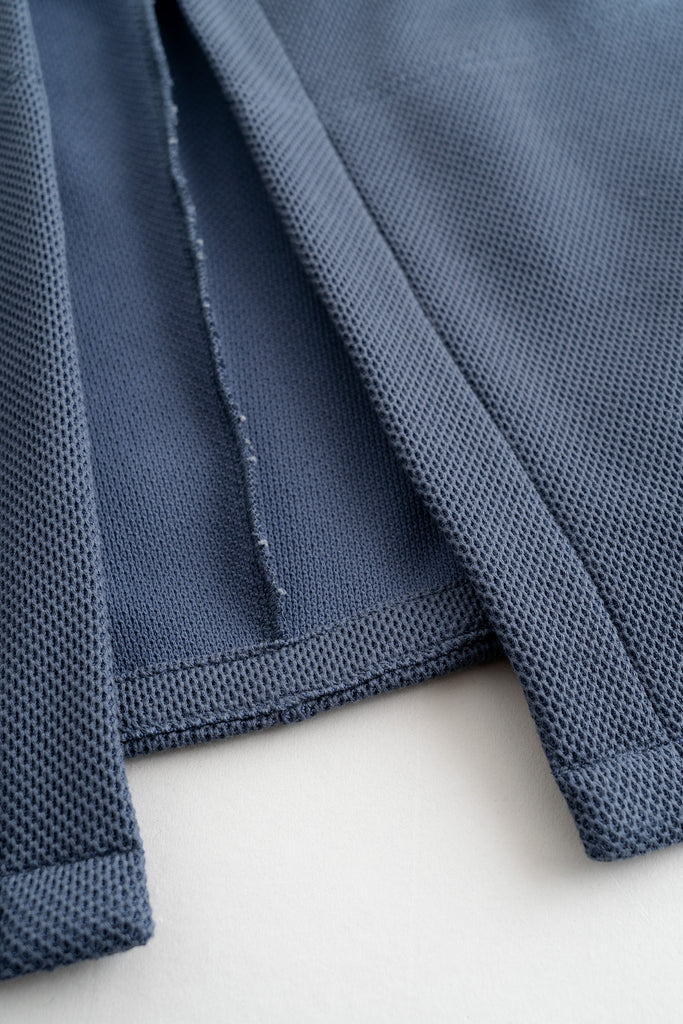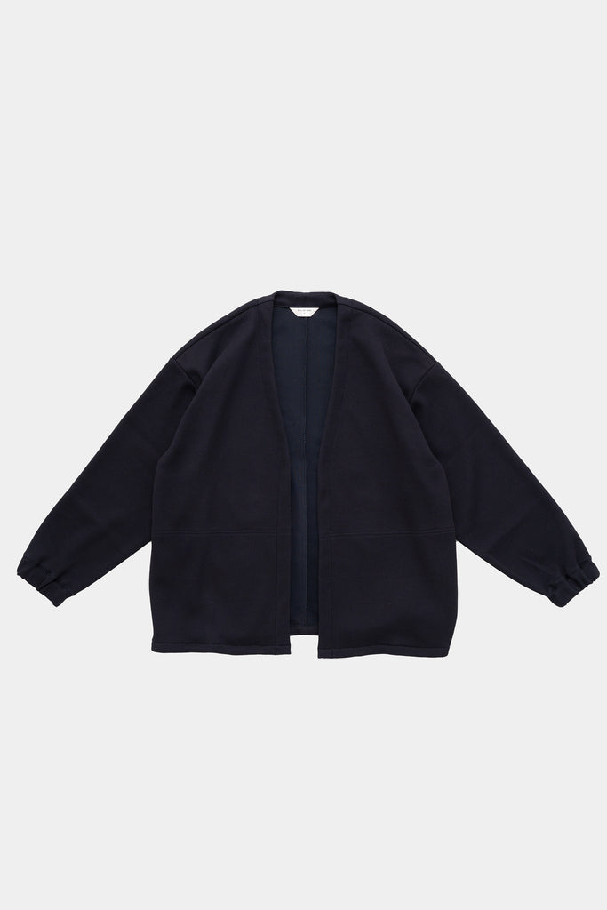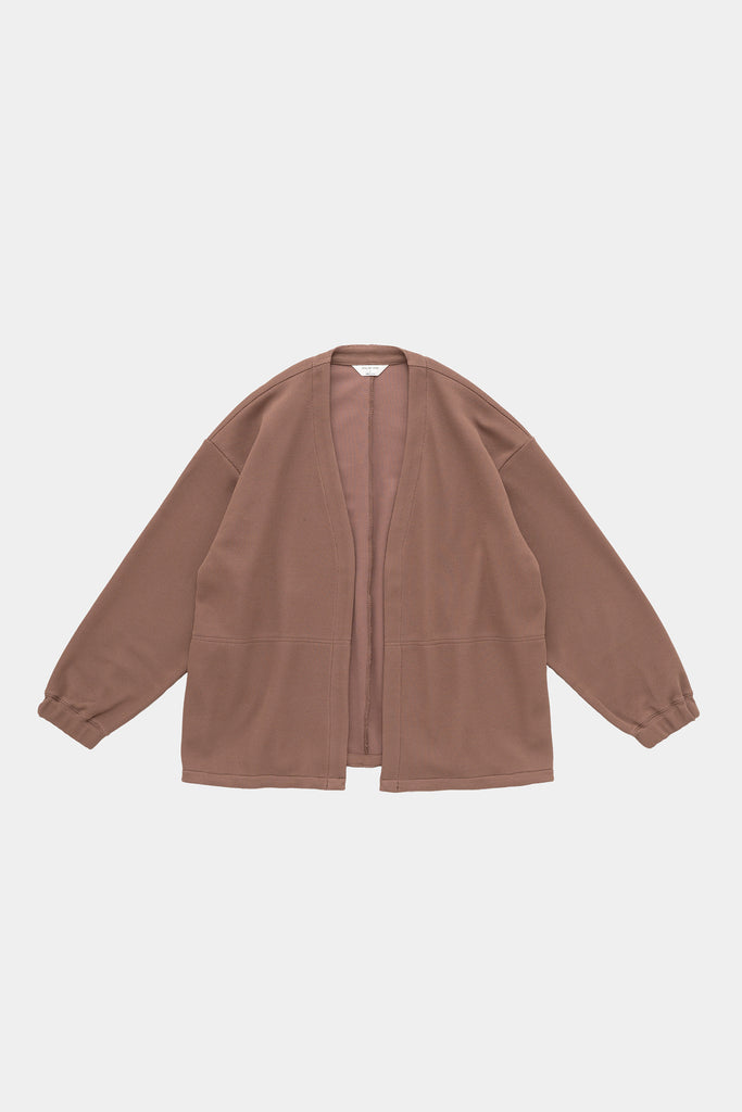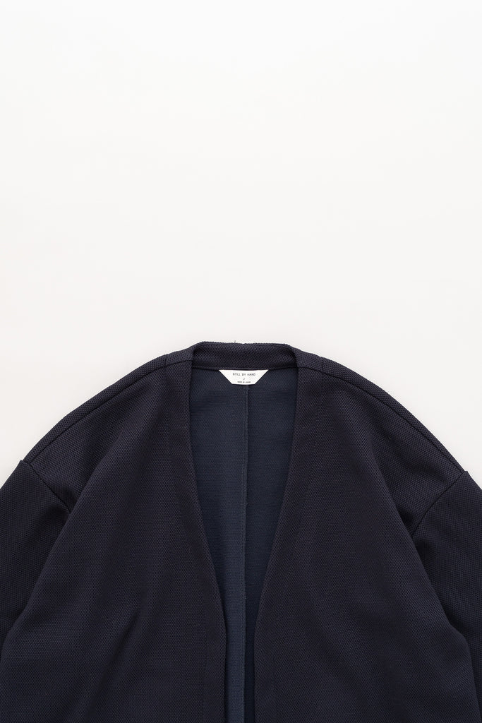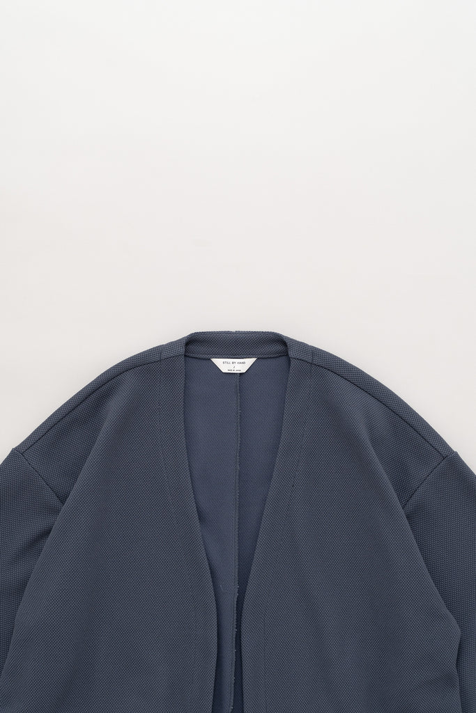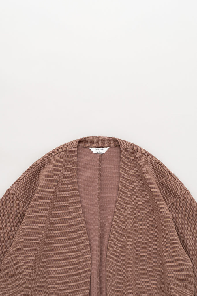 オリジナルのカノコ素材を使用したボタンレスカーディガン。