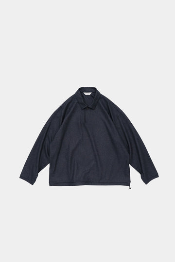 ウールとシルクを混紡した上品な光沢感が特徴の生地で長袖のポロシャツを作成しました。