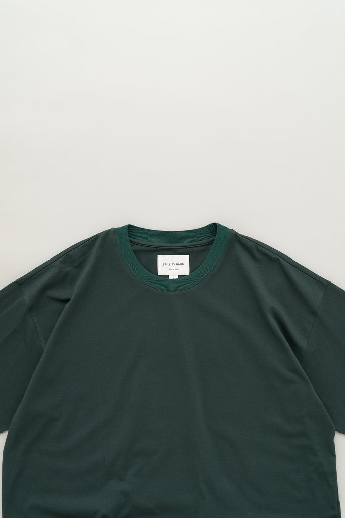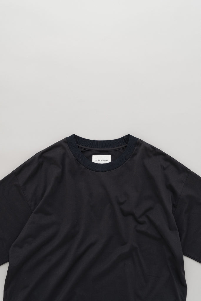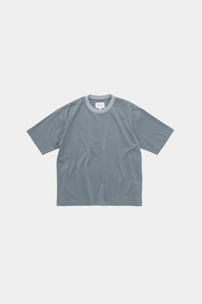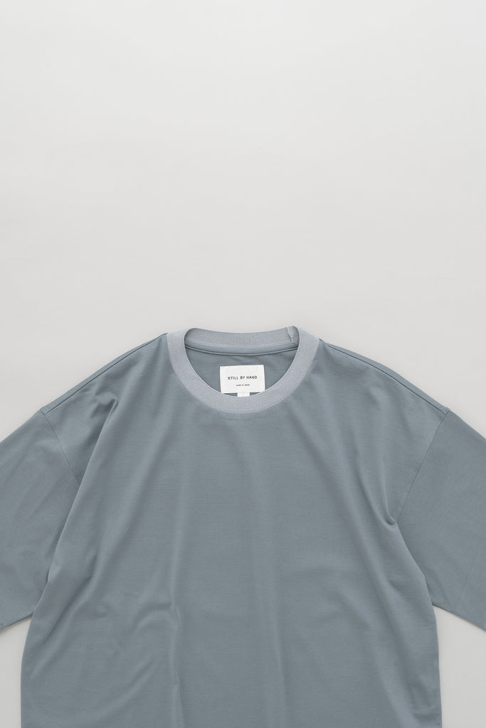 襟だけをニット編みで編み立てた半袖Tシャツ。