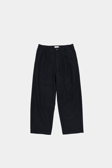 シルエットはワイドでテーパードを緩やかにし、ストンとしたラインとなります。