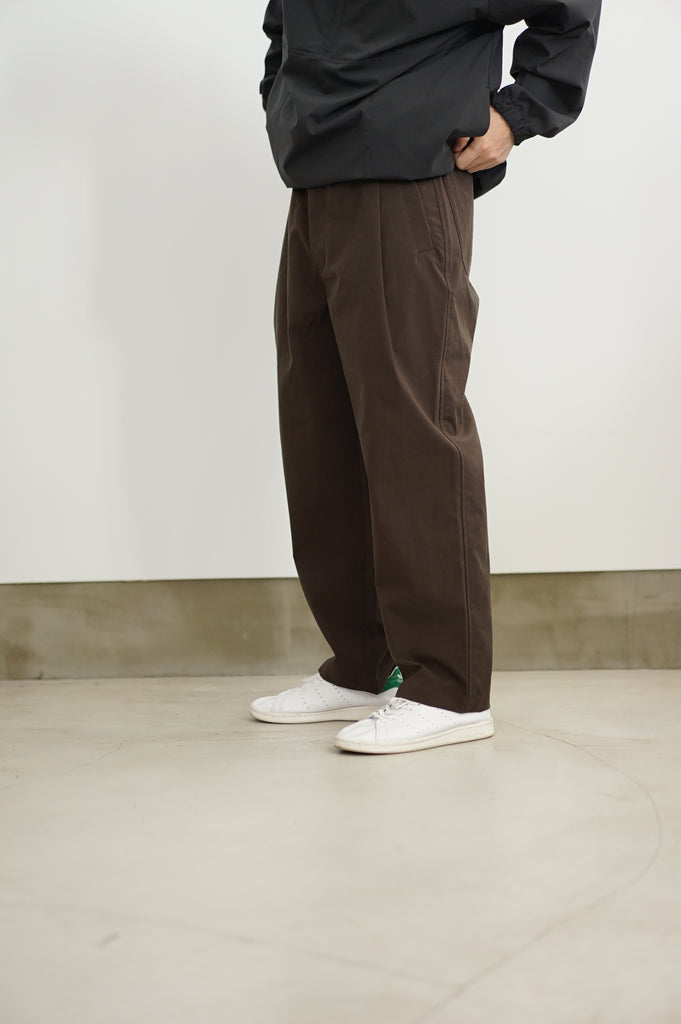 昨年、同シーズンにリリースし大変好評だったパンツに微修正を加えて再リリースしました。ナイロン100%でありながら天然素材のような質感とシルエットが人気です。