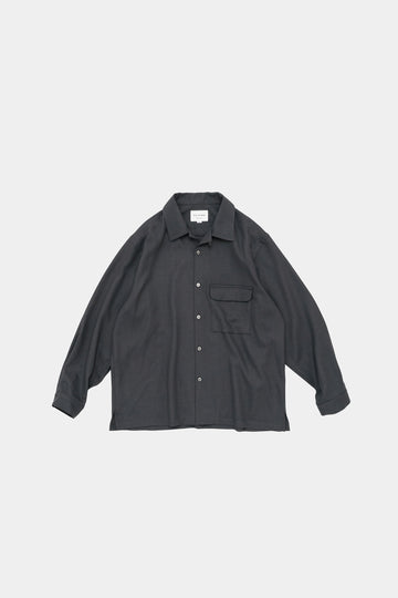 適度なシボ感のあるウール素材を使用したオープンカラーシャツ。