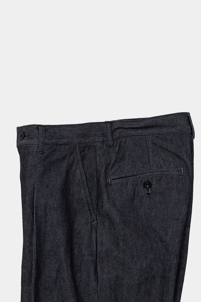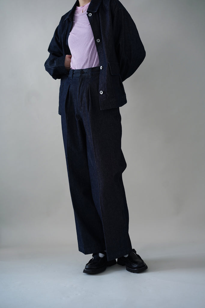 デニム楚材を使用していますがデザインはセンタープレス仕様でスラックのデザイン。